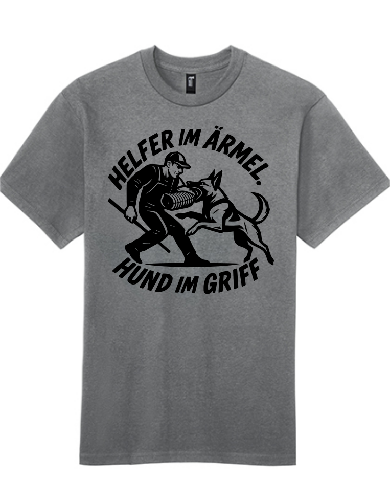 Zeigen Sie Ihre Leidenschaft für den Hundesport und die Schutzhundeausbildung mit diesem coolen T-Shirt! Das Design "HELFER IM ÄRMEL. HUND IM GRIFF." ist ein Must-have für jeden Schutzdiensthelfer, Hundeführer und Liebhaber von Hunden im Schutzdienst. Das hochwertige Shirt aus weicher Baumwolle bietet optimalen Tragekomfort und ist perfekt für Training, Wettkampf oder einfach für den Alltag. Ein ideales Geschenk für alle, die wissen, was es heißt, den Hund "im Griff" zu haben und die harte Arbeit des Schutzdiensthelfers zu schätzen wissen. Holen Sie sich jetzt dieses einzigartige Statement-Shirt!