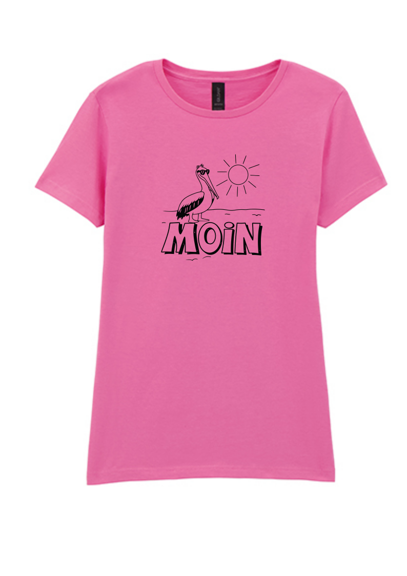 Ein Motiv, das sofort Küstenluft in den Alltag bringt: Dieses T‑Shirt zeigt einen stilisierten Pelikan vor Sonne und Strandlinie – reduziert, klar und mit norddeutscher Gelassenheit. Der Schriftzug MOIN setzt einen charmanten Akzent und macht das Shirt zu einem Statement für alle, die das Meer im Herzen tragen.